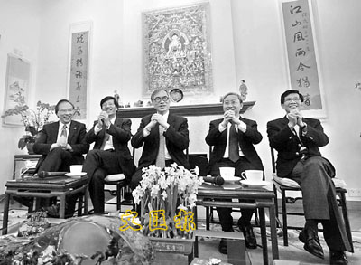 ■劉遵義(中)偕同四名副校長向大家拜年。本報記者曾慶威 攝