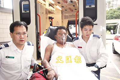 ■尼泊爾漢吸入濃煙不適,由救護員送院。 本報記者蔣焯文攝