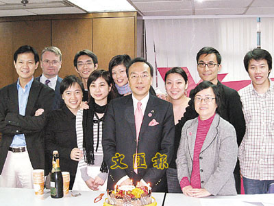 ■梁家傑昨日49歲生日,其競選辦職員為他慶祝。梁家傑選舉辦提供