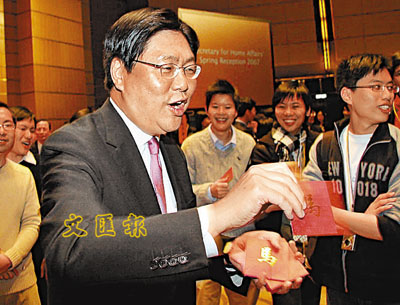 「牛一」日,工作日。昨日年滿55歲的財經事務及庫務局局長馬時亨雖然在工作中度過生日,但亦不忘與眾同樂,現身民政事務局新春酒會向在場記者大派利是,更會宴請今天「牛一」的民建聯主席馬力及一眾民建聯成員。對於「同月同日生」的特首候選人梁家傑,「肥馬」也送上一句:「生日快樂!」