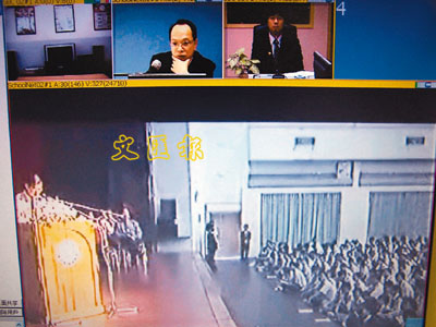 ■透過網上視像系統,兩地學生可以清晰看見對方。