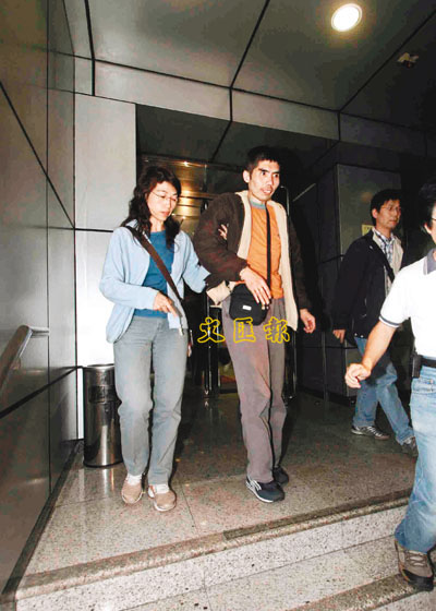 ■失蹤30小時始被尋回的郭少偉(右),事後由家人接走。 本報記者鄺福強 攝