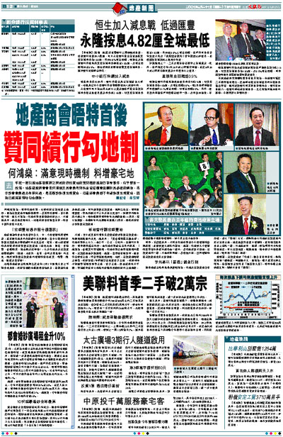 他續說,定期賣地或「勾地」,都各自有利有弊,無論採用哪一種制度,問題都不大。他認為,港人置業比例已很高,住屋需要主要來自「細屋換大屋」,現時本港土地供應足夠,絕對不會有「樓荒」。