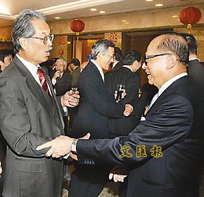 ■公署春茗宴上,李嘉誠相約黃宜弘兩會後「球戰」。本報記者潘達文 攝