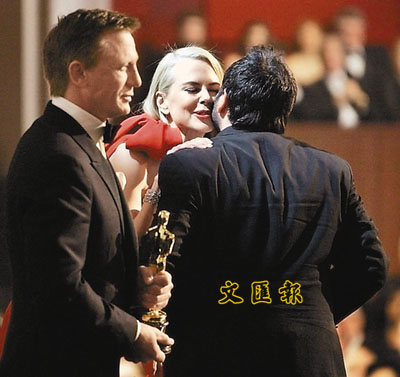 ■妮歌潔曼(中)當晚祝賀《魔間迷宮》的美指得獎。 美聯社