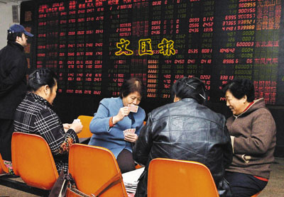 ■內地股市回勇,山東這家證券交易所的股民心情輕鬆地在打牌。 路透社