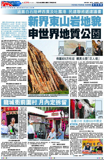 翻開中學的地理教科書,當中寫道「香港的新界東部擁有如火山岩地貌,風化地貌、岩石地質景觀及海岸風景等自然地理景觀」。民建聯和馬鞍山民康促進會,現正計劃於年中提交建議書,促請香港政府為這些經典的地質地貌,申報聯合國「世界地質公園」。日前應邀來港考察的聯合國地質公園顧問專家趙遜表示,香港已具備申報所需的地質條件,但科學(地球)普及方面則有待加強。但有學者擔心,有關建議最終會淪為賺錢工具。 ■本報記者 徐海煒