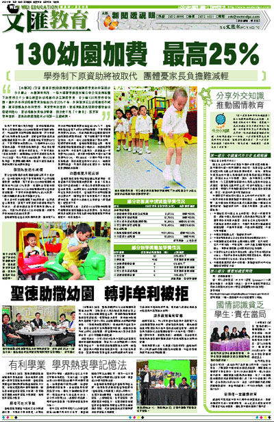 【本報訊】(記者 歐陽杏櫻)教統局接受幼稚園調整學費的申請將於今日截止,本報調查所得,一些大型辦學團體如聖公會及保良局等轄下的學校及不少獨立經營的幼稚園均決定調整學費,至少逾130所學校會加價。當中非牟利幼稚園學費加幅由3%至25%不等,亦有個別私立幼稚園逆市減價,擬爭取轉為非牟利學校,享受學券的資助。香港東區家長教師會聯會副主席趙明擔心,若幼稚園加費情況普遍,部分更不是「小數目」,就算有學券資助,家長的經濟負擔未必保證一定能減輕。