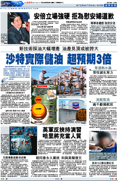 雖然石油公司對能源供應的前景表示信心,但環保人士認為,人類始終不能無止境地耗用化石燃料,而且石油供應充足,油公司便不願意開發另類能源,二氧化碳的排放將持續增加,加劇溫室效應。 ■ 《紐約時報》