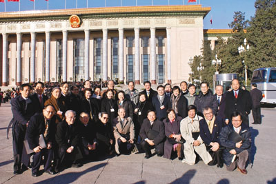 ■出席全國「兩會」的港區人大代表及政協委員在人民大會堂前合影。 本報記者羅斯 攝