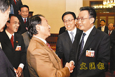 ■6日,中共中央政治局常委、全國人大常委會委員長吳邦國參加十屆全國人大五次會議上海代表團審議。新華社