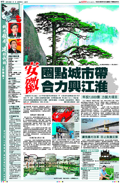 省會經濟圈、沿江經濟帶、沿淮城市群,省長王金山近日指出,安徽今年將通過重點發展構建這三大中心城市帶,來全面實施城市群規劃,強化中心城市的規模效應、聚集效應和輻射效應,打造跨越式發展的戰略新支點。