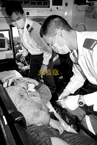 ■地盤工人受傷送院。本報記者蔣焯文 攝