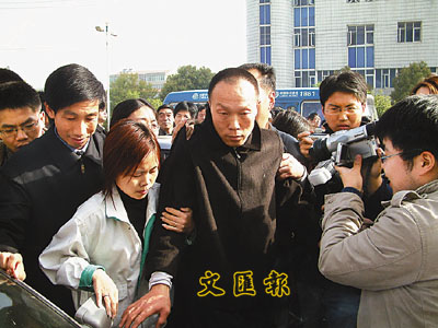 ■2005年,佘祥林在女兒(左二)的攙扶下進入法庭。資料圖片
