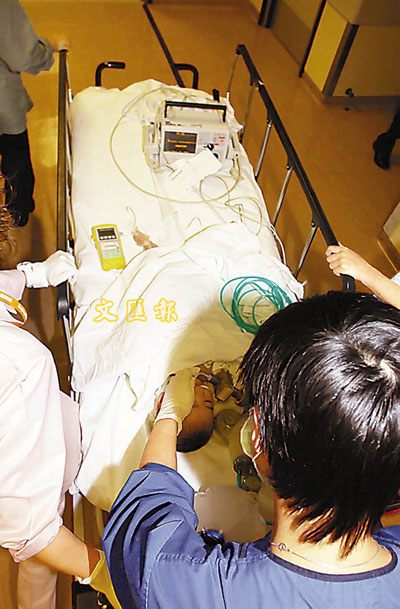 譚父接報趕到醫院,憂心忡忡。醫生搶救一小時後,告知家人男嬰已恢復心跳和呼吸,並醒過來,家人始鬆一口氣。男嬰被送入深切治療病房留醫,情況仍然危殆。