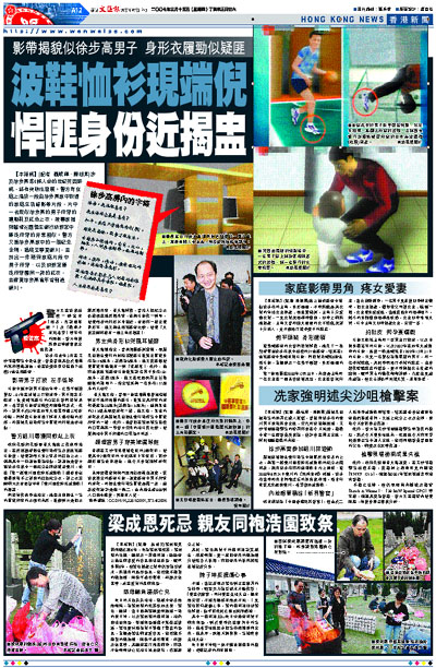 【本報訊】(記者 聶曉輝、陳朗昇)涉及徐步高等4條人命的世紀死因研訊,終有突破性發展。警方昨在庭上播放一段由徐步高家中取得的家庭生活錄影帶片段,片中一名貌似徐步高的男子所穿的運動鞋及紅色上衣,被專家指與麗城花園恆生銀行劫殺案中匪徒所穿的非常相似。警方又憑徐步高家中的一個紀念金牌,追縱至寧夏銀川,並找出一件疑與家庭片段中男子所穿、以及劫殺案匪徒所穿屬同一款的紅衣,並證實徐步高當年曾到過銀川。