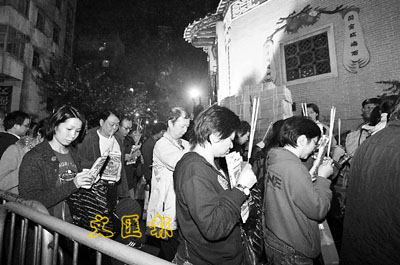 今日是正月廿六一年一度觀音開庫的大日子,昨晚已有大批善信到紅磡觀音廟、大坑蓮花宮及筲箕灣天后廟排隊借庫,不少人更帶備香燭、水果及椅子,誠心向觀音借庫及祈福。 本報記者潘政祁 攝