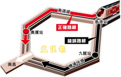 地鐵昨日證實,前日下午3時52分,一列由人手編排東涌線列車在香港站開出後,錯誤駛入了機場快線的路線;由於路軌的編排設計,列車於九龍站機場快線月台落客後,不能駛回奧運站停站,只能直接前往南昌站,導致20多名原本去奧運站的乘客,要轉車返回奧運站。