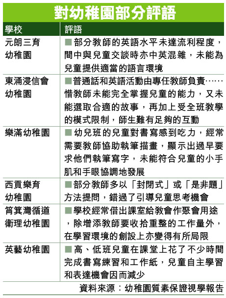 資料來源:幼稚園質素保證視學報告