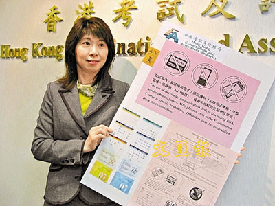 【本報訊】(記者 歐陽杏櫻)會考及高考將於3月中陸續開考,針對過往的手機「出貓」疑雲,考評局特別提醒考生,一經發現手機開著或響起,輕則取消該應考科目成績,重則會被取消所有科目考試資格,另今年亦嚴禁提早離場的學生帶走考卷,一眾考生應小心誤犯11項考試戒律。考評局總經理(學校考試及評核)許婉清表示,今年會加強宣傳,如透過學校張貼「考生重要提示」海報、派發考生手冊及發出家長信,另試場考生桌上的座位編號卡也會印有「關掉手提電話」提示,以減少學生犯規的機會。