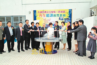 ■大埔墟公立學校舉行「再生能源教育基地啟動禮」,由廖秀冬(中)任主禮嘉賓。