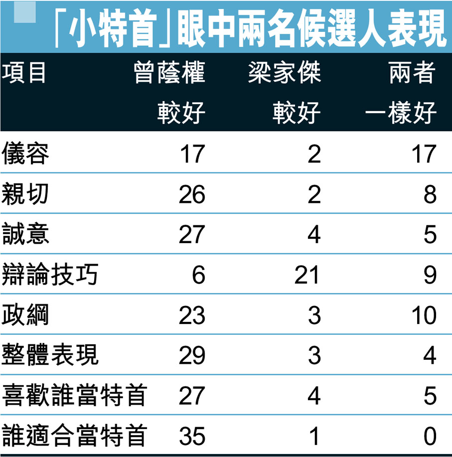 「小特首」眼中兩名候選人表現