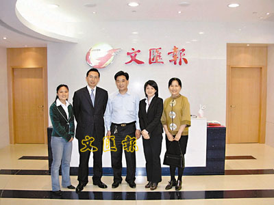 江西省九江市政府新聞辦主任盧大喜(中)昨晚到訪本報 ,本報副總經理王松(左二)等代表報社接待。 本報記者黃詠勤 攝