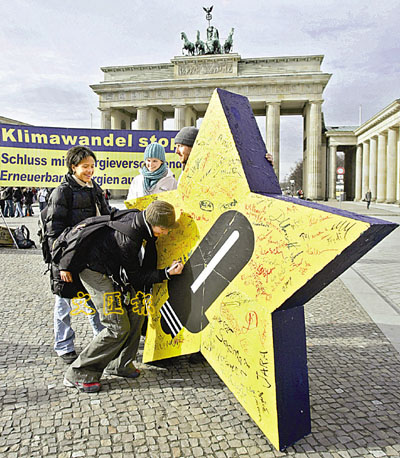 ■哪裡來的一顆大星?其實這顆星是由環保組織BUND放置在柏林的,希望能夠引起當地政界人士關注全球氣溫變暖的問題,並反對排出暖氣的方案。