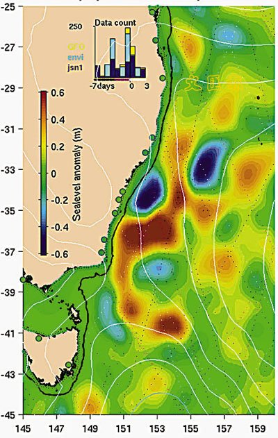 根據澳洲科學暨工業研究組織公佈,巨大的冷水渦流寬度約有200公里,深度則達到1公里,距離悉尼岸邊100公里。這股冷水渦流非常強勁,足以把巨大的東澳海流推出大海。自從荷里活動畫電影《海底奇兵》上映後,人們大多已經認識東澳海流的威力。