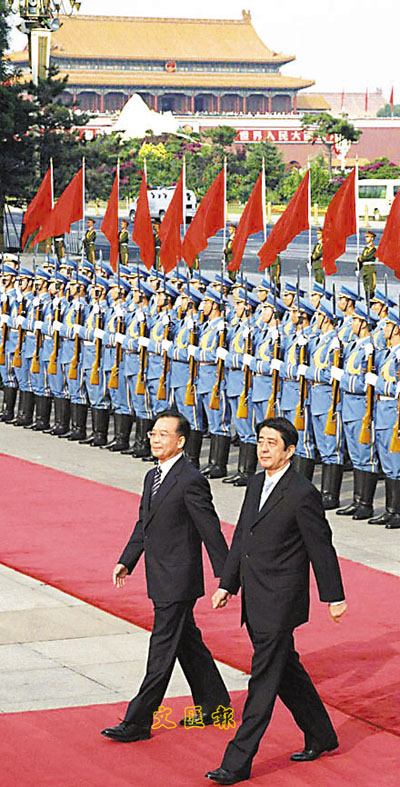 日本傳媒最近報道說,溫家寶日前在中南海會見日本自民黨總務會長丹羽雄哉時表示,訪日期間,將與安倍晉三商討兩國的戰略互惠關係,以及規劃兩國關係的未來,並可能就加強兩國關係共識發表聯合聲明。
