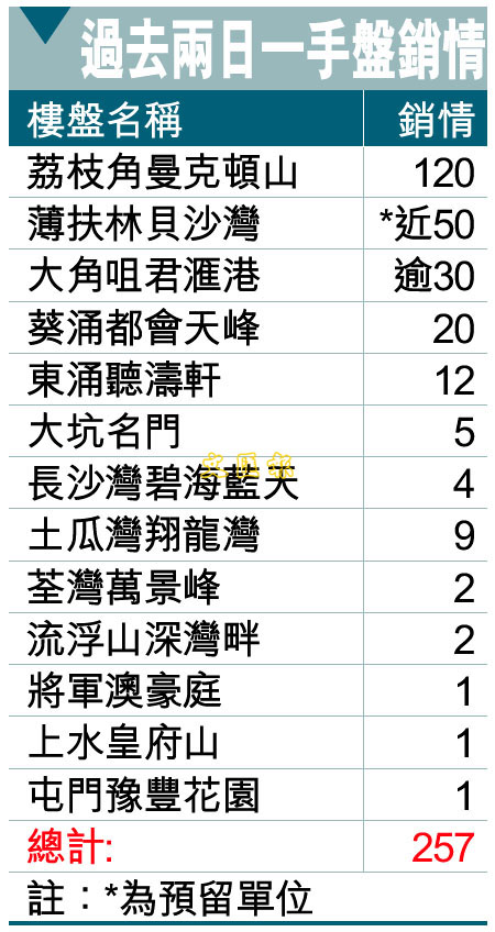 新盤假日連預留售257伙 (圖)