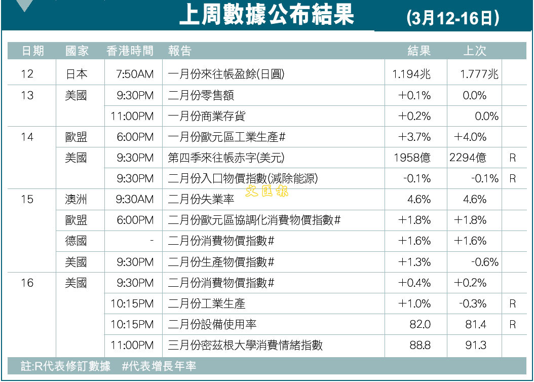 上周數據公布結果(3月12-16日) (圖)