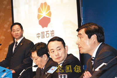 ■左二起:中國石油董事會秘書李懷奇,副董事長、總裁蔣潔敏及財務總監王國樑。