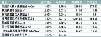 佔今年以來榜首的美盛美元核心債券基金,基金透過持有美元定息證券以獲得回報。基金在2004、2005和2006年表現分別為2.91%、1.18%及3.57%,基金最差季度收益和標準差為0.95%及3.99。基金資產百分比為89.27%債券、10.7%現金及0.03% 其它。