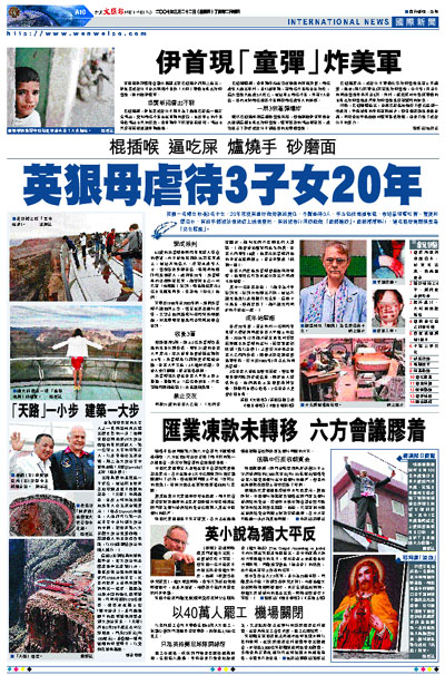 英國一名婦女收養3名子女,20年來沒有盡好做母親的責任,不斷虐待3人,手法包括棍插喉嚨,強迫品嚐嘔吐物、糞便和漂白水,有的手部被放到熱爐上燒到變形,有的被強行用砂紙做「面部磨砂」。面對種種罪行,這名狠母竟辯稱要為「兒女驅魔」。