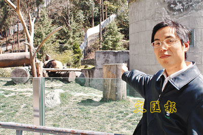 ■何長貴介紹其帶大的一對大熊貓,雄的是紳士,雌的似淑女。
