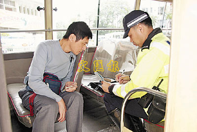 ■警員向小巴司機錄取口供。
