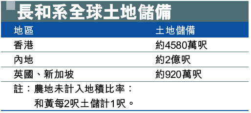 長和系全球土地儲備 (圖)