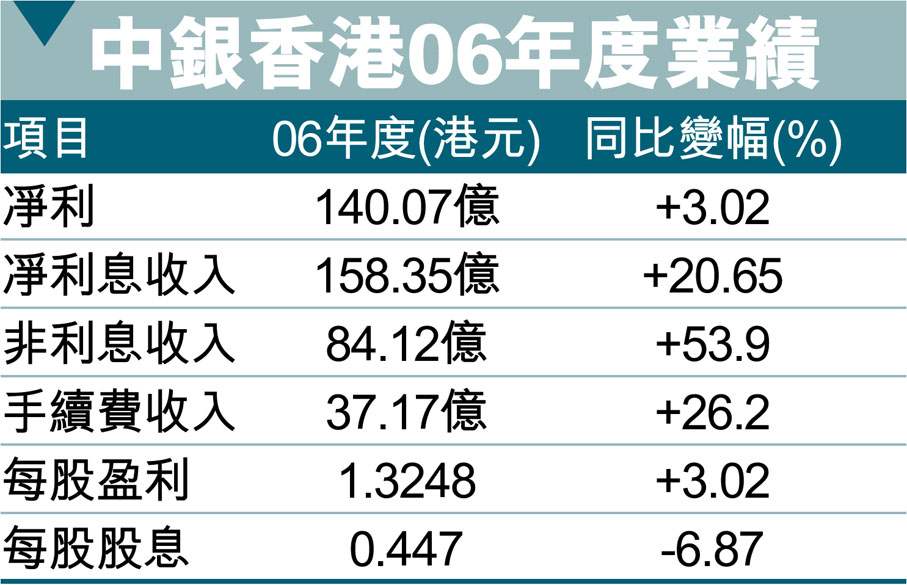中銀香港06年度業績