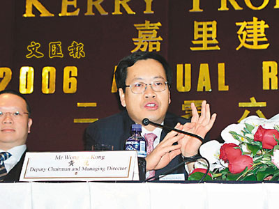 嘉里副董事長兼董事總經理黃小抗表示,目前集團在內地的土地儲備之總樓面面積達2,000萬平方呎,今年落成兼可銷售的樓面面積約150萬呎,其中6萬呎已售出,而香港則約21萬呎,其中4萬呎已售出;目前集團的土地儲備足夠,旗下九龍灣及長沙灣的貨倉用地,可申請改為住宅用途。