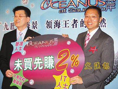 ■郭子威(右)表示,嵐岸一期有35%買家為專業人士及中小企管理層,故推「專業人士置業升值」計劃專攻該客戶群。 本報記者林德芬 攝