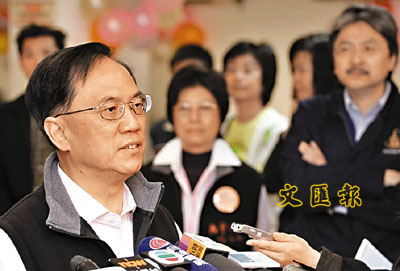 ■曾蔭權落區訪問上水彩源會堂時,一身街坊裝。資料圖片