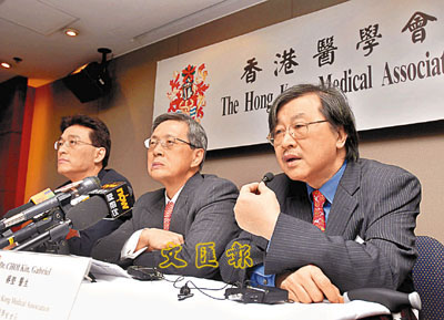 ■香港醫學會宣布,由於大部分業界人士支持曾蔭權,故該會10名選委已決定全部投票給曾蔭權。右一為會長蔡堅。 本報記者李志樑 攝