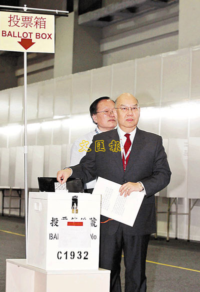 他介紹說,在是次選舉中,每名選委只可投一票,選委必須用繫在紙板上的印章,在選票上所選擇的候選人姓名右邊的圓圈內,蓋上一個「剔」號,然後將選票向內對摺,再放入兩個並排投票箱的任何一個。而是次選票的設計不包含候選人相片、所屬政黨或黨徽,只會標示候選人的名字。