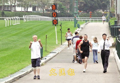 ■跑馬地馬場的緩跑徑,昨日亦有配備對講機的馬會職員巡邏。本報記者溫瑞麟 攝