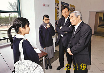 ■解曉岩(右)專程到場為學生打氣,與他們親切對話。本報記者劉國權 攝