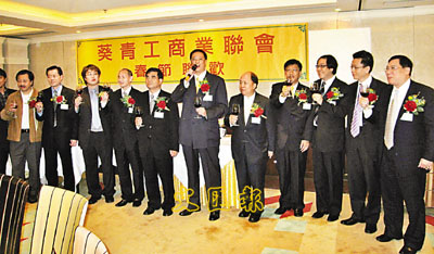 葵青工商業聯會主席朱德朗代表該會歡迎出席晚宴的嘉賓友好,他稱香港回歸近10年來經歷了風風雨雨,但在祖國支持下,中央政府CEPA、自由行等利港措施,令香港經濟開始復甦,去年內地大企業陸續來港上市,令港股票市場活躍,股民賺到錢。他稱,中國經濟突飛猛進,香港很多商人在內地經濟發展中賺到錢。他強調葵青工商聯由商界人士組成,內地的發展令好多人富起來,希望大家充分把握中國經濟騰飛機遇,拓展商機的同時亦要考慮為國家多做貢獻。