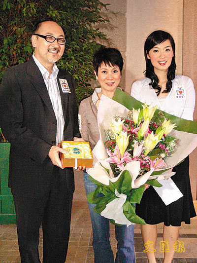 ■陳寶珠接受郭璐訪問之後,衛視行政總裁司徒傑贈送紀念品表謝意。