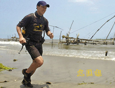 ■加賽德是首位跑步橫越全球的人。圖為他03年在印度跑步途中。路透社