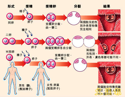 ¡@ªñ¤é¦³¿ò¶Ç¾Ç®a¥H¤@¹ïÉӥͤp«Ä°µºë±Kªº°ò¦]´ú¸Õ¡Aµo²{¦P§Z©Ê©M¤G§Z©ÊÂùML¨âªÌ¤§¶¡¡AÁÙ¦³²Ä3ºØ¡u¥b¦P§Z©ÊÂùML¡v(semi-identical twins)¡A§Y¬O¦b¨üºëªº¹Lµ{¤¤¡A¦³¨âÓºë¤l¸ò¦P¤@Ó§Z¤lµ²¦X¡A¦ý³oºØ®×¨Òµo¥Íªº¾÷·|¥i»¡¬O·L¥G¨ä·L¡C